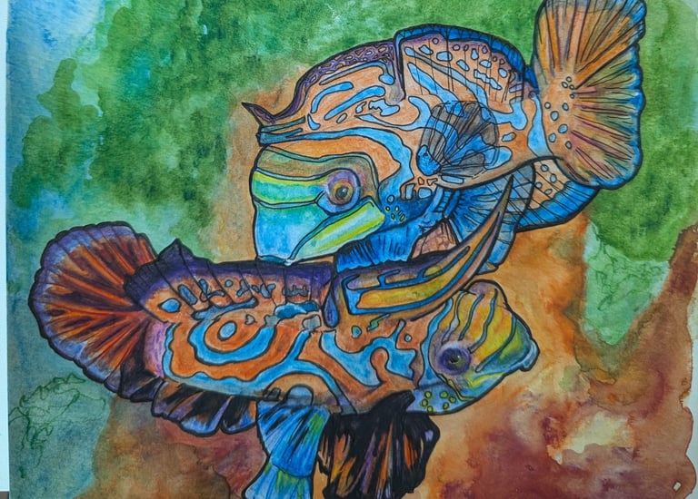Coastal edges, coral reefs, and nature's lights transformed into paintings, patterns, and story.
